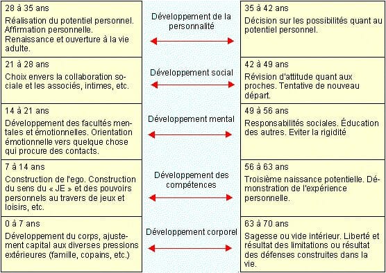 De plus, il semble que les cycles de nos proches peuvent nous influencer dans un sens ou dans un autre. Les débuts et fins de période de 7 ans peuvent être décalés dans l’âge, en fonction des cycles des personnes avec qui on évolue.